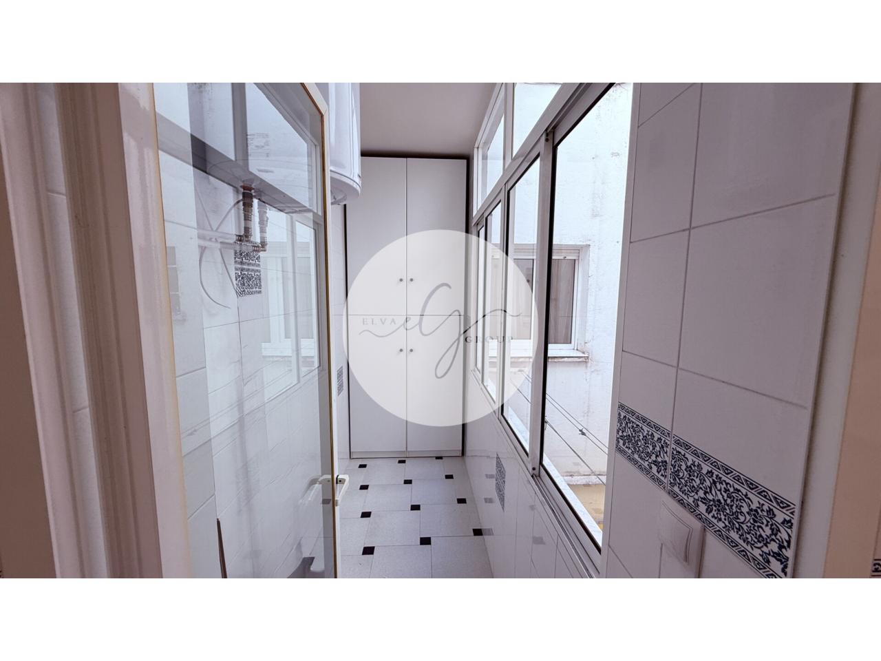 La cocina, equipada con electrodomésticos nuevos, dispone además de una práctica y amplia galería en la terraza para destinarlo a cuarto de lavandería, ya que además cuenta con un gran armario para guardar la colada.